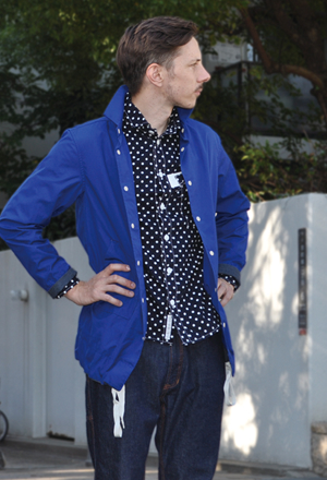 2015 spring Royal Blue: KL15HJK18 Long Shirts Coach Jacket “Sibelius”_18,000yen Navy Dot: KL15HSH27 Gadet Pocket Shirts “Weber”_13,000yen Indigo: KL15HPT35 Unkle Length Utility Denim “Piotrp”_16,500yen 6Back 8Next